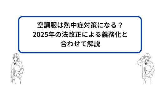 2026/02/01 空調服は熱中症対策になる?2025年の法改正による義務化と合わせて解説 「熱中症対策が義務化されたと聞いたけれど、とりあえず空調服を導入すればよいの?」とお考えではありせんか? 2025年6月に労働安全衛生規則が改正されて、一定の暑…