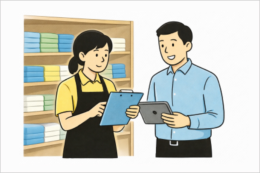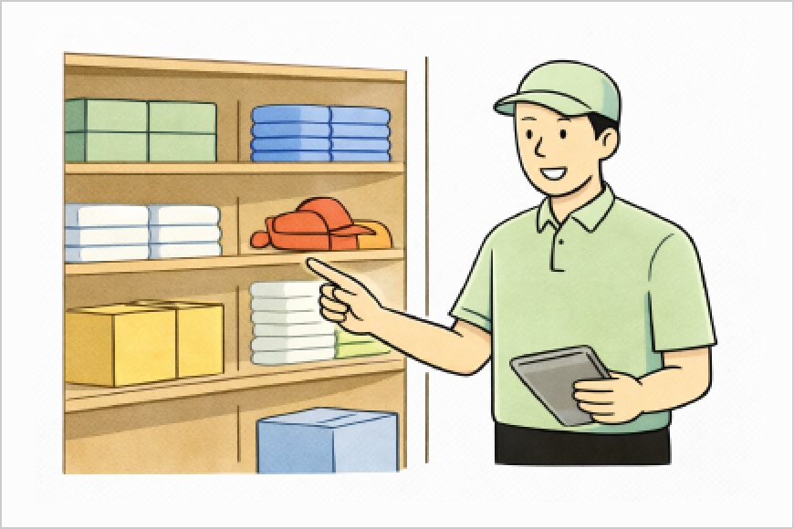 独自の在庫管理システムと物流拠点を活用し、「必要な時に必要な数」を供給。繁忙期・採用増加にも即応。