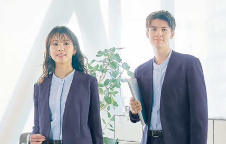 事務・営業など多様な業務に対応できるユニフォームを導入。動きやすさやサイズ展開に配慮しながら、社内全体の統一感を演出しました。「働きやすく、会社の一体感が高まった」といった評価をいただいています。
