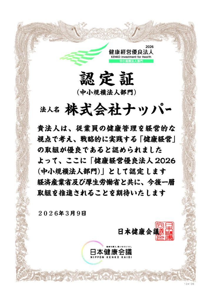 当社は経済産業省と日本健康会議が共同で選定する「健康経営優良法人2026(中小規模法人部門)」に認定されましたことをお知らせいたします。